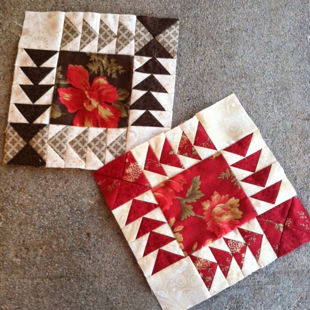 And this weekend, I worked on a pair of pieced blocks with Flying Geese patterning - two different colorways.